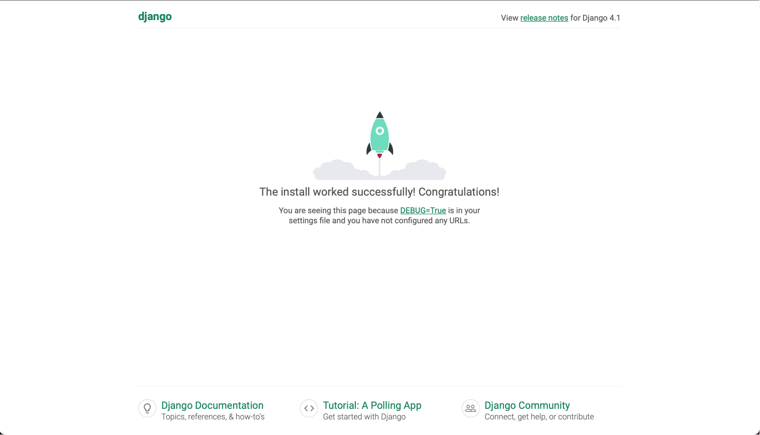 # 서버 구동 확인 : 브라우저에서 "http://127.0.0.1:8000/"주소로 이동