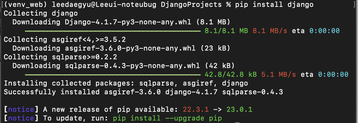 * pip 버전이 22.3.1버전에서 23.0.1버전으로 업그레이드 됨.