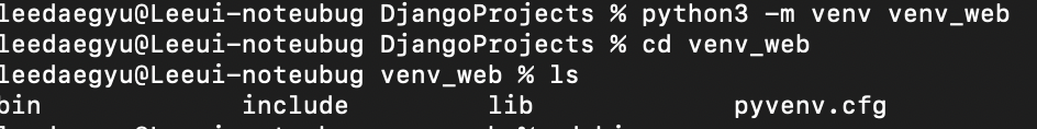 * 'venv_web'으로 하였으나 아무거나로 지어도 상관 없다.