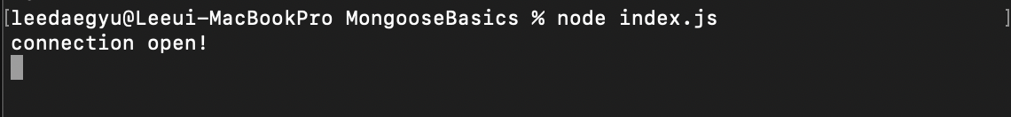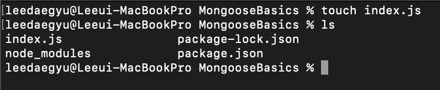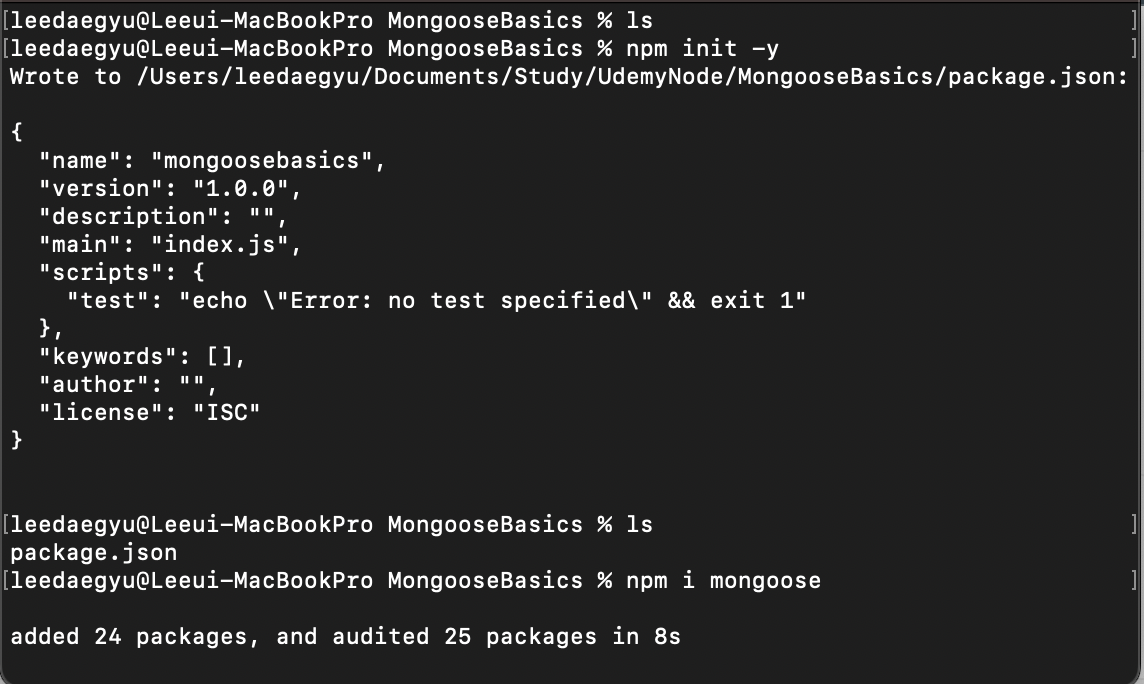 npm init -y를 사용하여 NPM 저장소를 초기화 하며 새로운 프로젝트를 생성후 Mongoose를 설치.