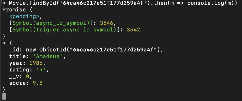 Movie.findById('64ca46c217e51f177d259a4f').then(m => console.log(m))